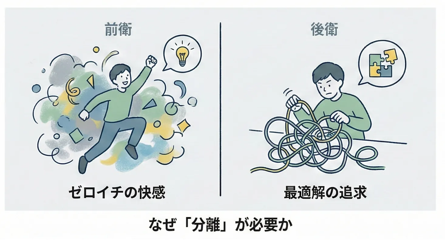 - 前衛は、後衛がデリバリーで直面する難所を知っているからこそ、実現可能性を踏まえた「挑戦的な提案」ができる